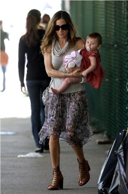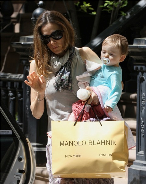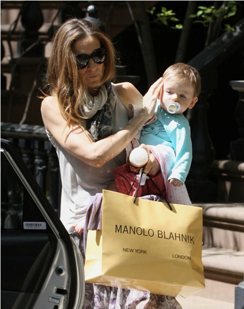 Oh well now this is convenient. Sarah Jessica Parker was out with her twin(s) today in New York. Two different sets of photos, two differently dressed babies, and one Manolo Blahnik shopping bag.
