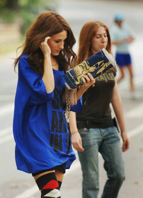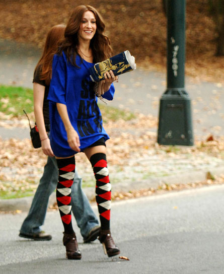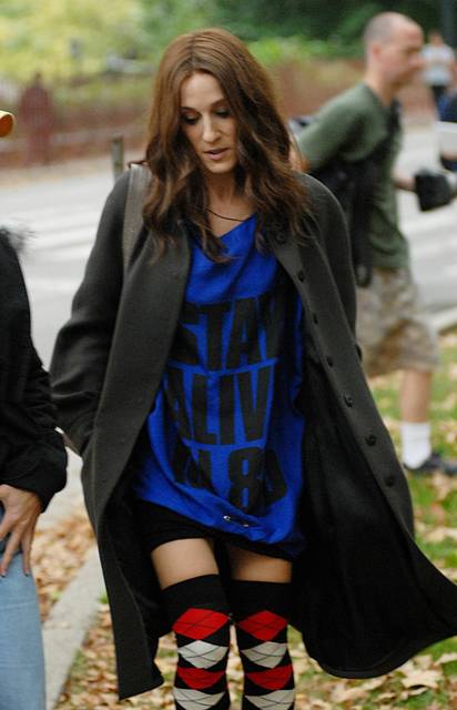 Next…SJP looks great as a brunette with skinny ass legs to pull off that pattern and those shoes. My loins, those shoes…