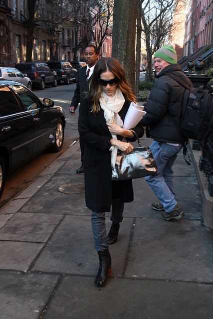 SJP looked all business yesterday out and about in New York. She’s also working out a new boot. Camel toe boot? More comfortable?
