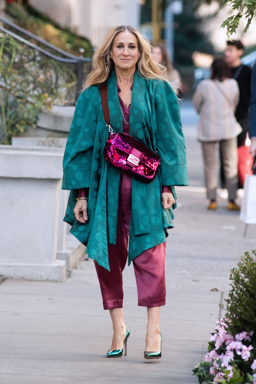 This is where Carrie Bradshaw/Sarah Jessica Parker, my ma, and I intersect. I would 100% wear this outfit. But not in these colours. My ma would wear these colours, but not this outfit. SJP plays mahjong. This is a perfect mahjong outfit. (Go Fug Yourself)