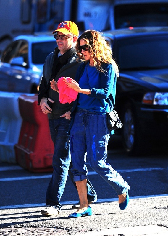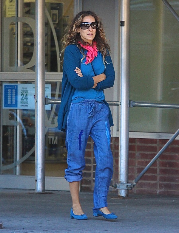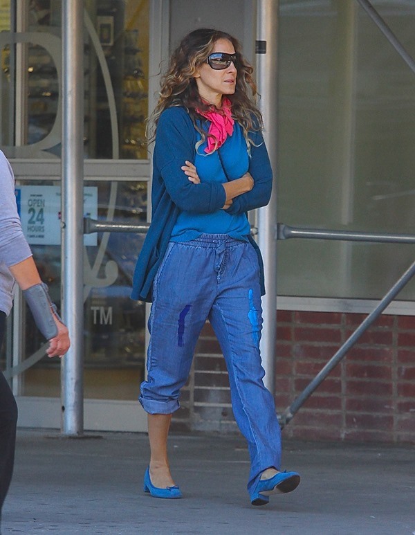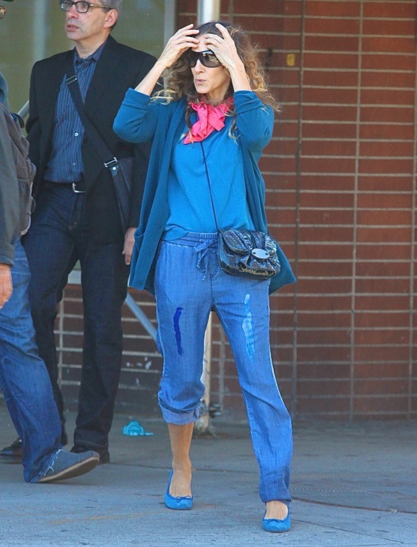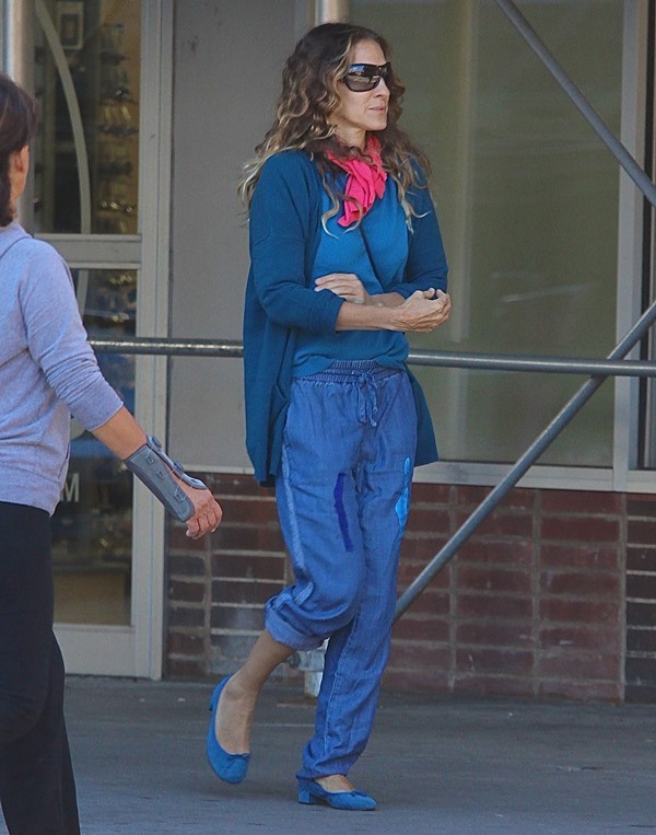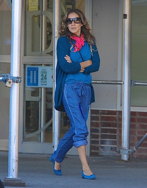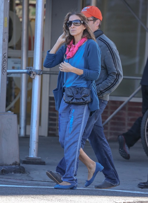 These look like track pants to me. Probably very expensivie track pants but track pants. And...ballet flats with a heel? With one leg hitched up.