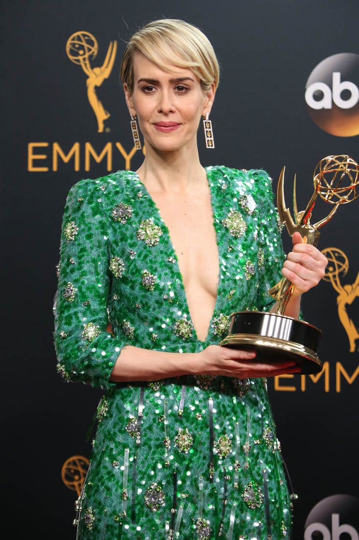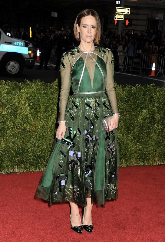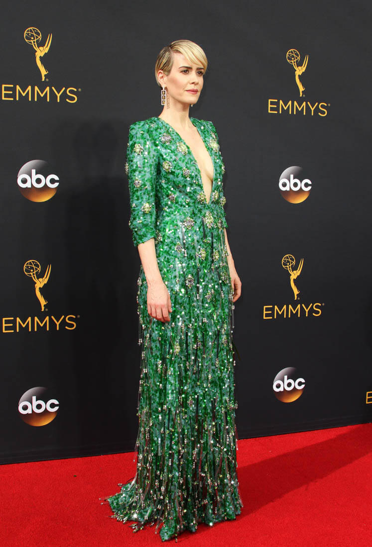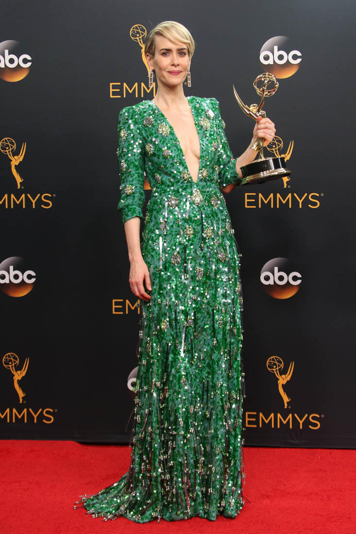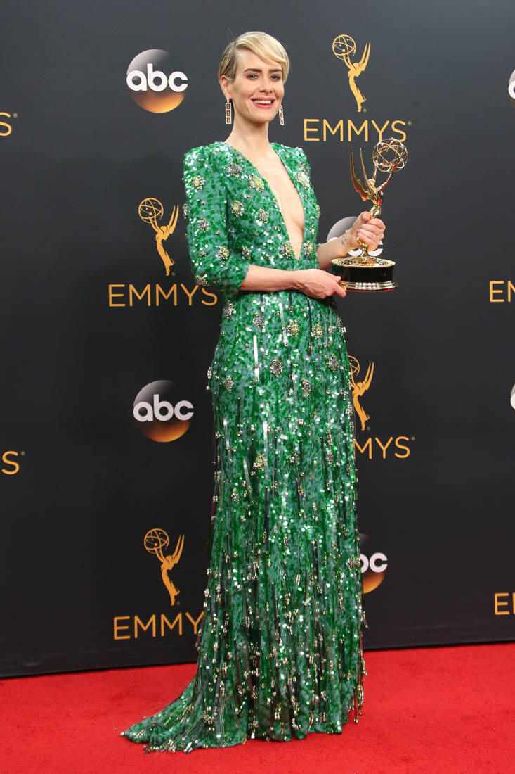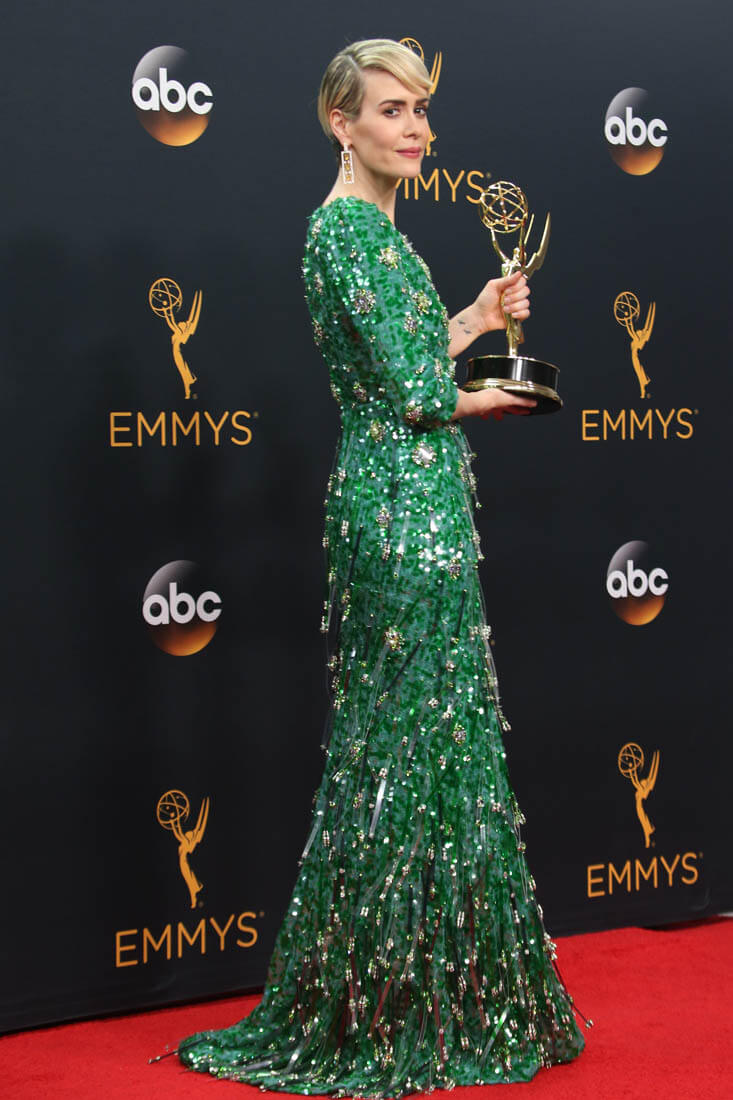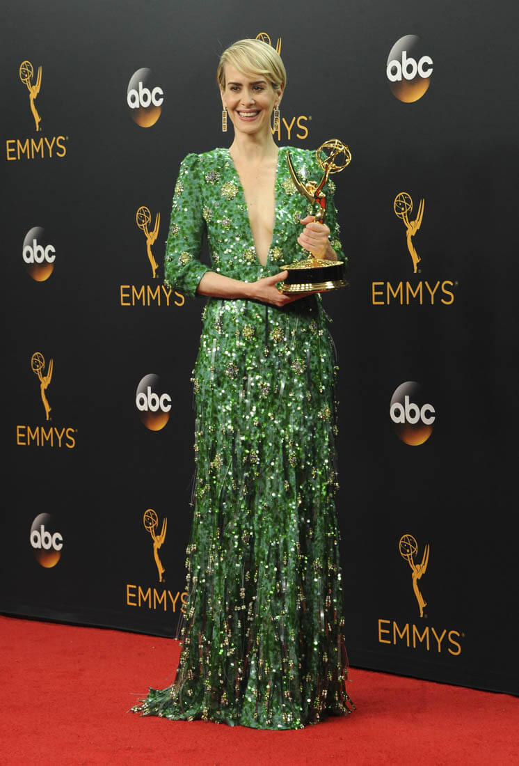 It’s also one of those dresses where she knows she looks good, and it’s making her carry herself differently. I mean, true, she was a favourite to win, and the project meant a lot to her, and she brought the real Marcia Clark as her guest in the hopes that she could issue a national apology (who are you, Sarah Paulson?) so she had lots to feel good about. But compare the dress to this look from the 2014 MET Gala: