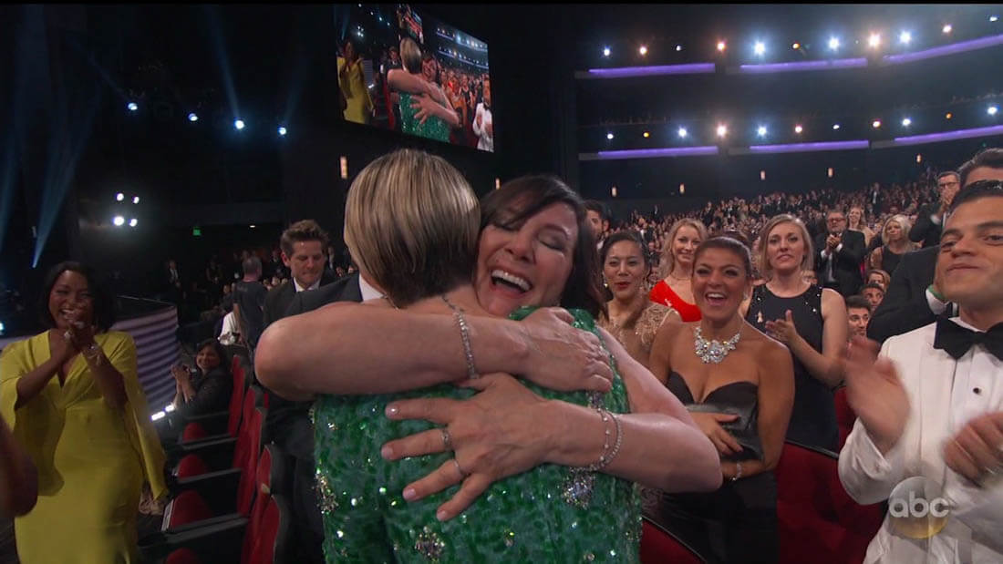 But last night’s vibe was being a benevolent queen who not only restored respect to a woman who had become a national punchline, but made everyone watch while she apologized for her part, and everyone else’s, in having done so. And she happened to do it in an epic, regal queen dress, while also sending love to her partner and giving props to an enfant terrible showrunner while somehow creating an unscripted moment between two women that was also between them and the world.