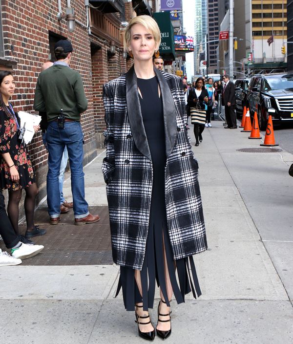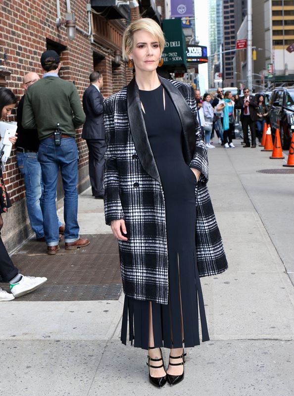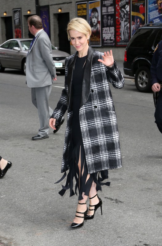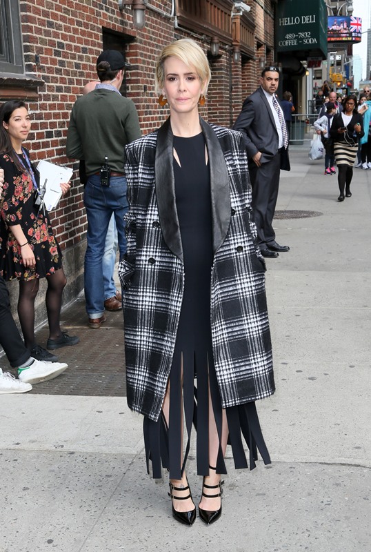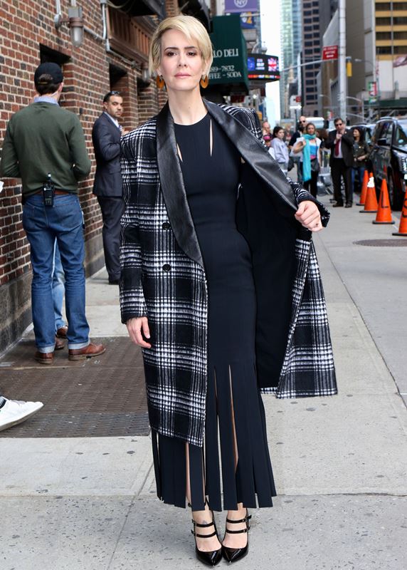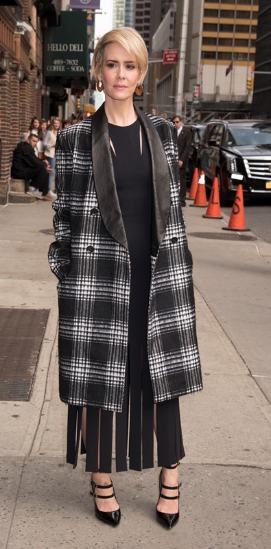 If I’d met Marcia Clark at 32 instead of 22, she would have been a hero to me. Marcia Clark was before my time, and that’s on me. But now Sarah Paulson is giving me a second chance at Marcia Clark. It could only ever be Sarah Paulson. Here she is yesterday at Colbert taking up all the Yes in a slashed black dress.