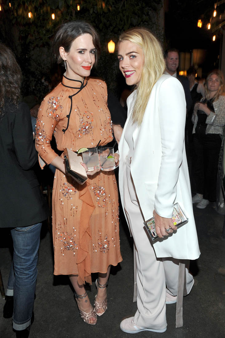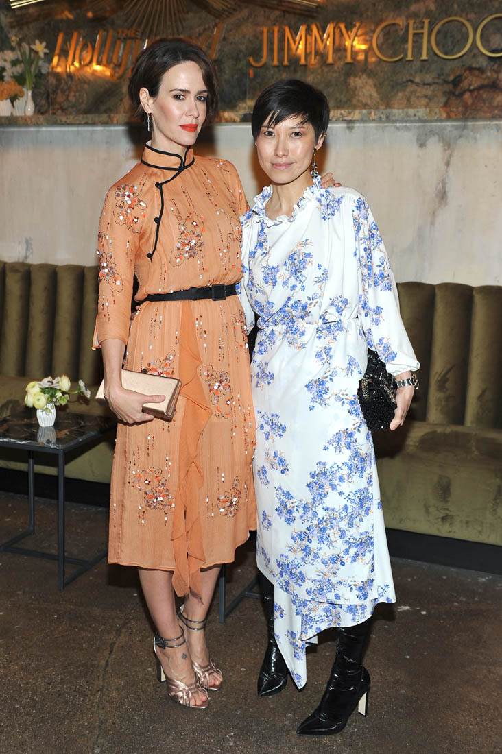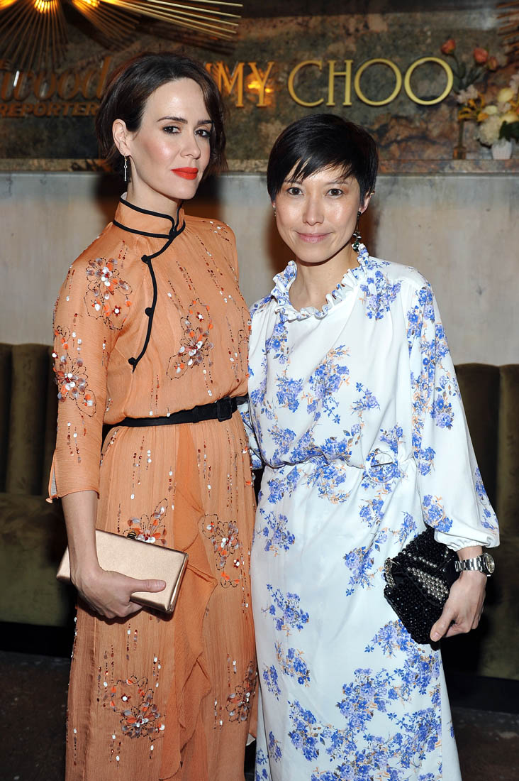 But I love it here on a dress worn by Sarah Paulson. It’s the sharpness of the black trim around the collar, I think. The peach needs the black. And of course the collar itself. I’ll never hate a Chinese collar.