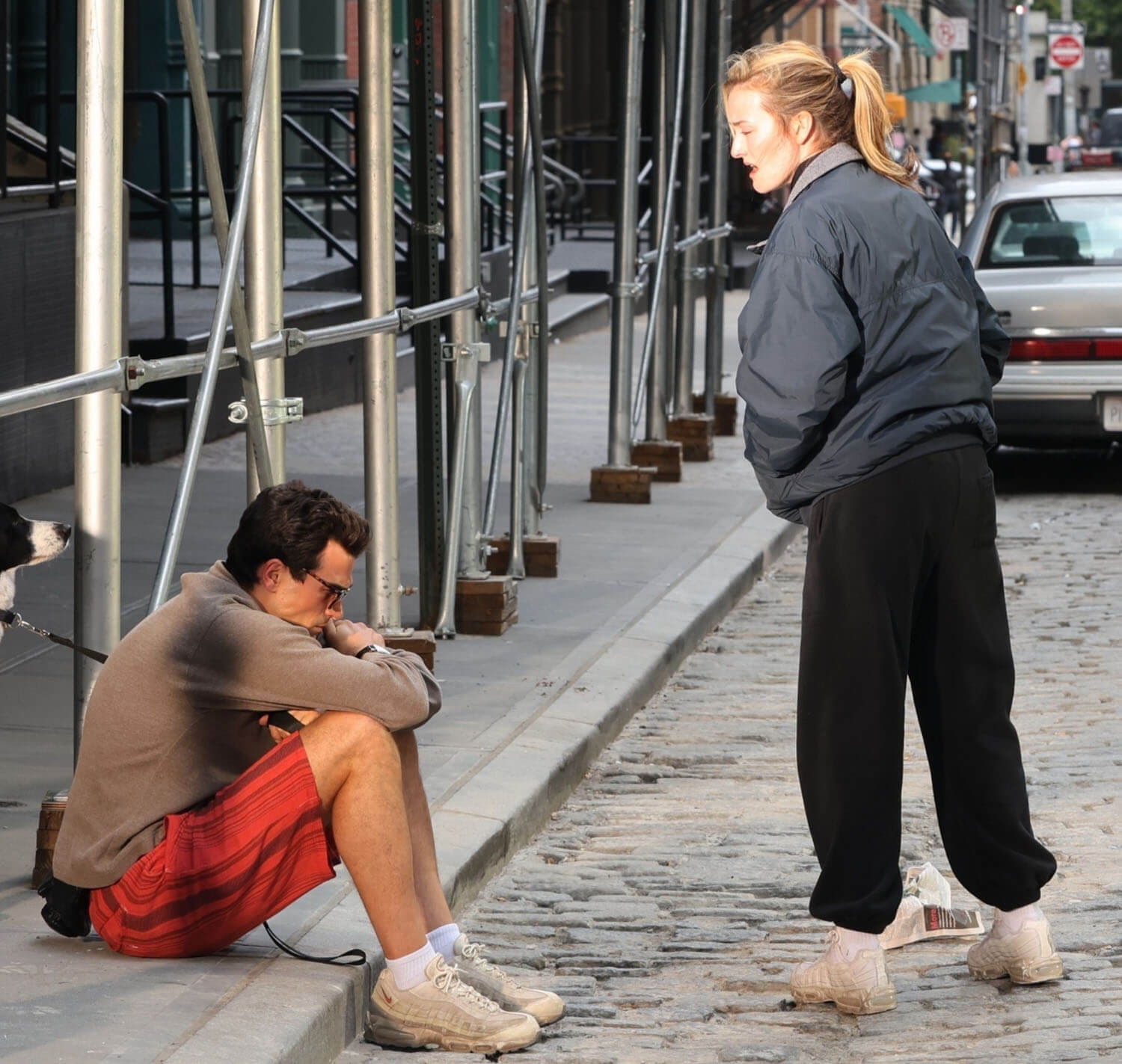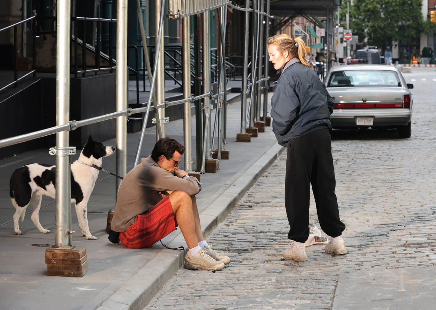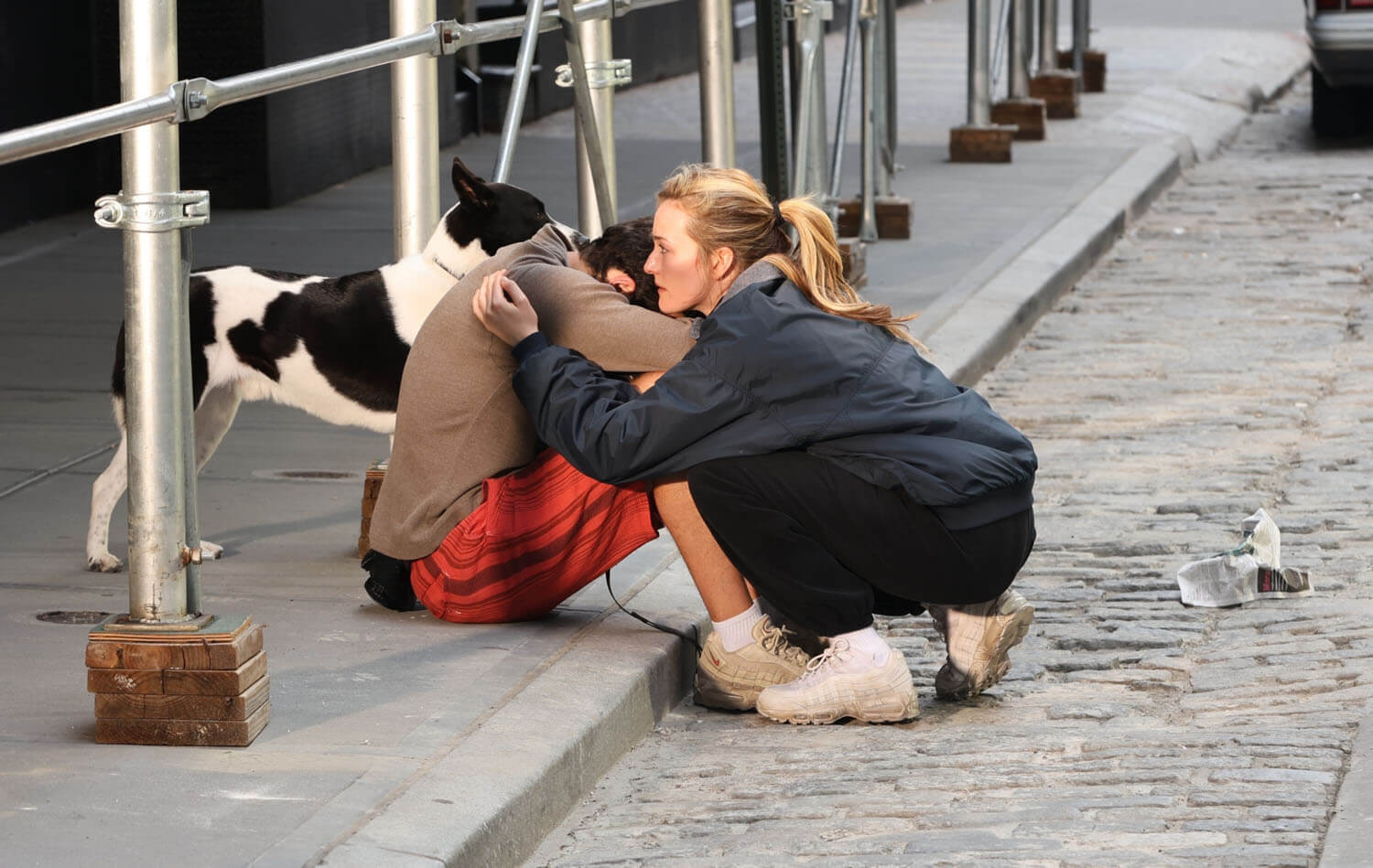 Paul Kelly and Sarah Pidgeon were photographed today on the New York set of Ryan Murphy’s American Love Story in their respective roles as John F Kennedy Jr and Carolyn Bessette. The scene they were filming is infamous. Those of us who were/are still obsessed with John and Carolyn know it well. And probably have conflicting feelings about it? I know I do, and not just with my grown-up 2025 perspective but even back then because it was an extremely personal moment between them, an emotionally charged argument captured by the paparazzi, during which they were seen screaming at each other and crying and hugging and yelling, crying, and hugging some more.