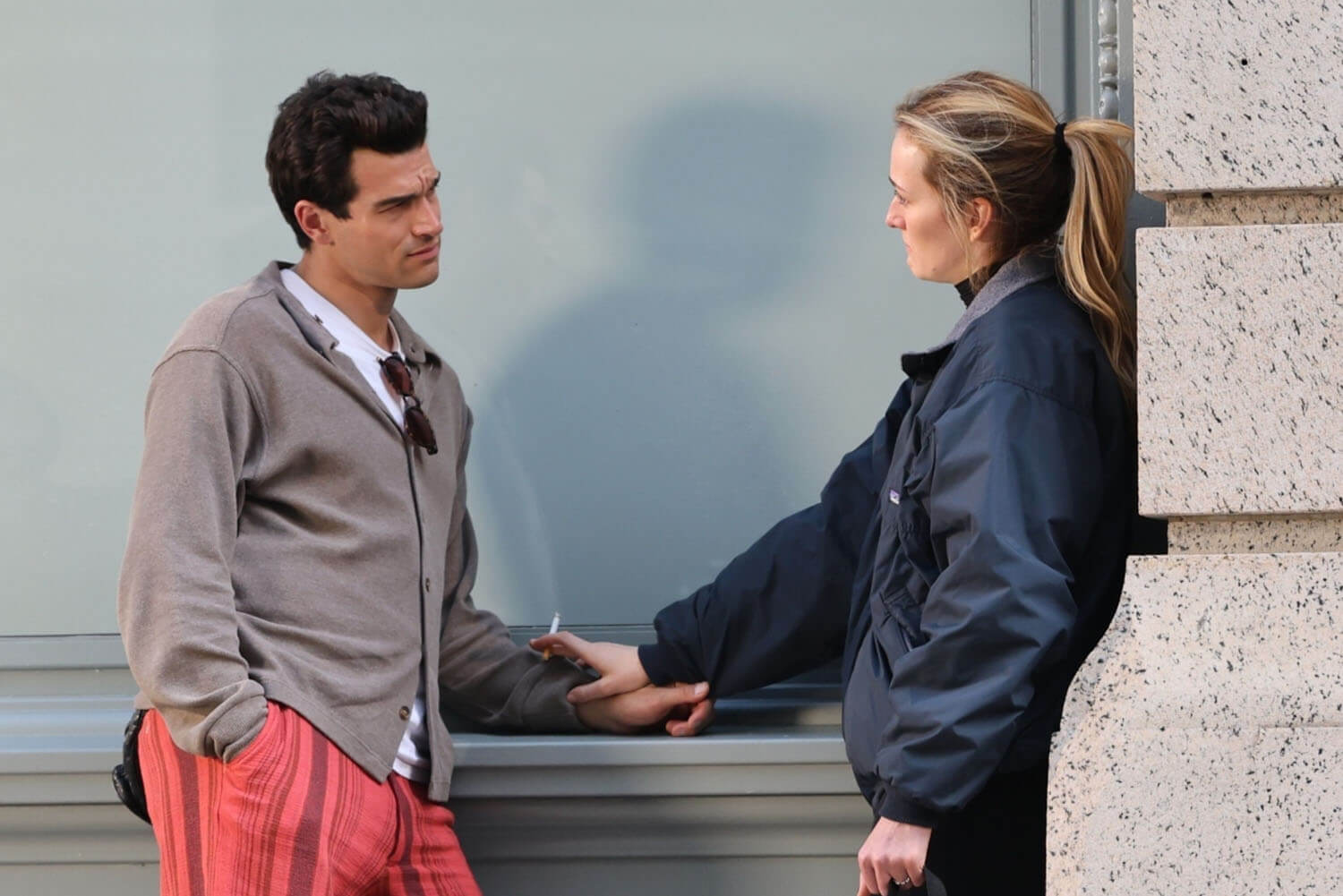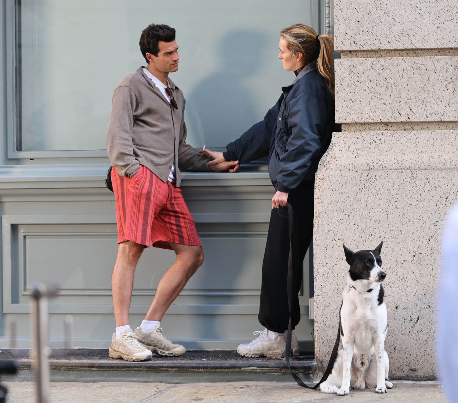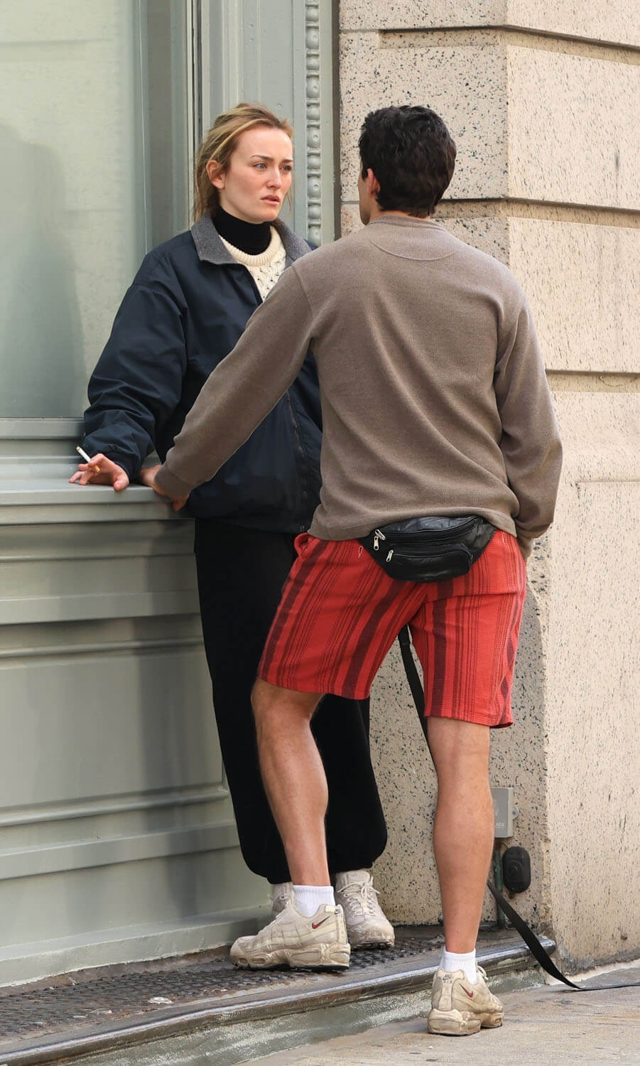 Paul Kelly and Sarah Pidgeon were photographed today on the New York set of Ryan Murphy’s American Love Story in their respective roles as John F Kennedy Jr and Carolyn Bessette. The scene they were filming is infamous. Those of us who were/are still obsessed with John and Carolyn know it well. And probably have conflicting feelings about it? I know I do, and not just with my grown-up 2025 perspective but even back then because it was an extremely personal moment between them, an emotionally charged argument captured by the paparazzi, during which they were seen screaming at each other and crying and hugging and yelling, crying, and hugging some more.