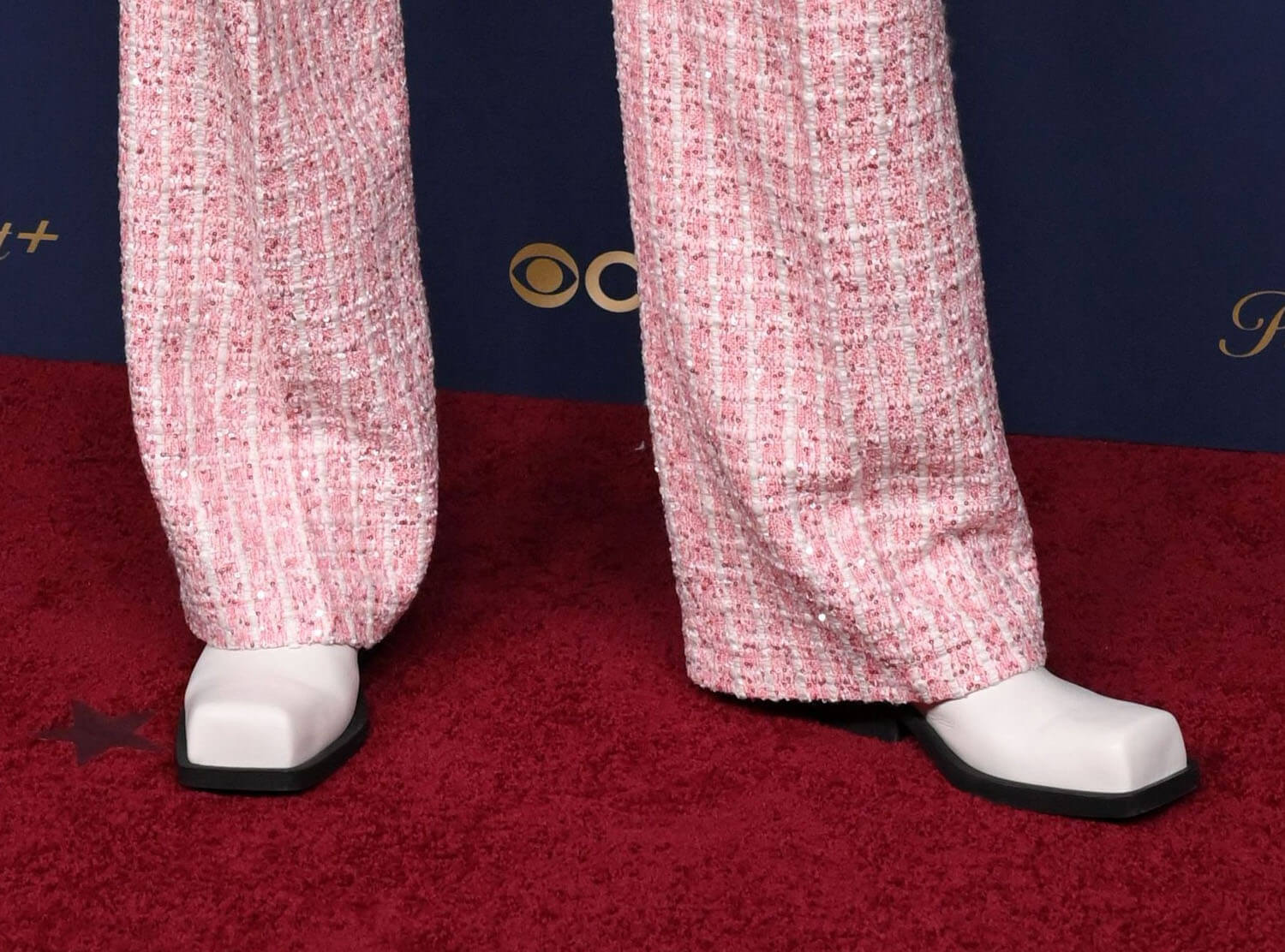 Pedro Pascal showed up in a cream double-breasted suit by Celine. I like the boxy line of the jacket, it’s a little 80s without going over the top on volume. But I do wonder if Jeff Hiller’s square shoes would work better with this suit? The shoes feel a little off on Pedro.