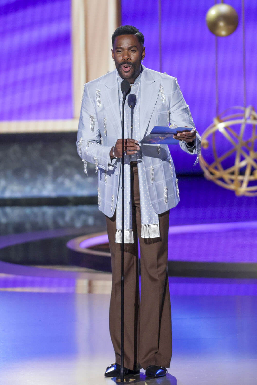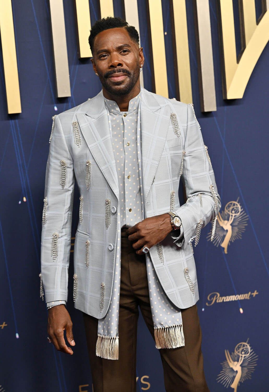 There were other dashing men receiving top marks, though, including Colman Domingo in a two-tone Valentino suit. Colman is rapidly approaching Zendaya status of being the presumptive best dressed by default. The combination of cocoa brown pants and powder blue shirt and jacket with sparkling accents is fantastic.