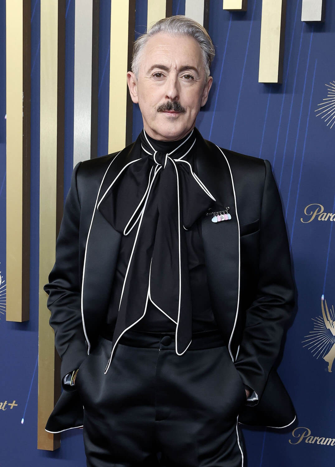 Alan Cumming, meanwhile, dressed like a fancy lad with his oversized neckerchief. The suit is from Tanner Fletcher, and he also wore a pin benefitting Not A Phase, which supports trans+ adults in the UK. You can learn more about Not A Phase here.