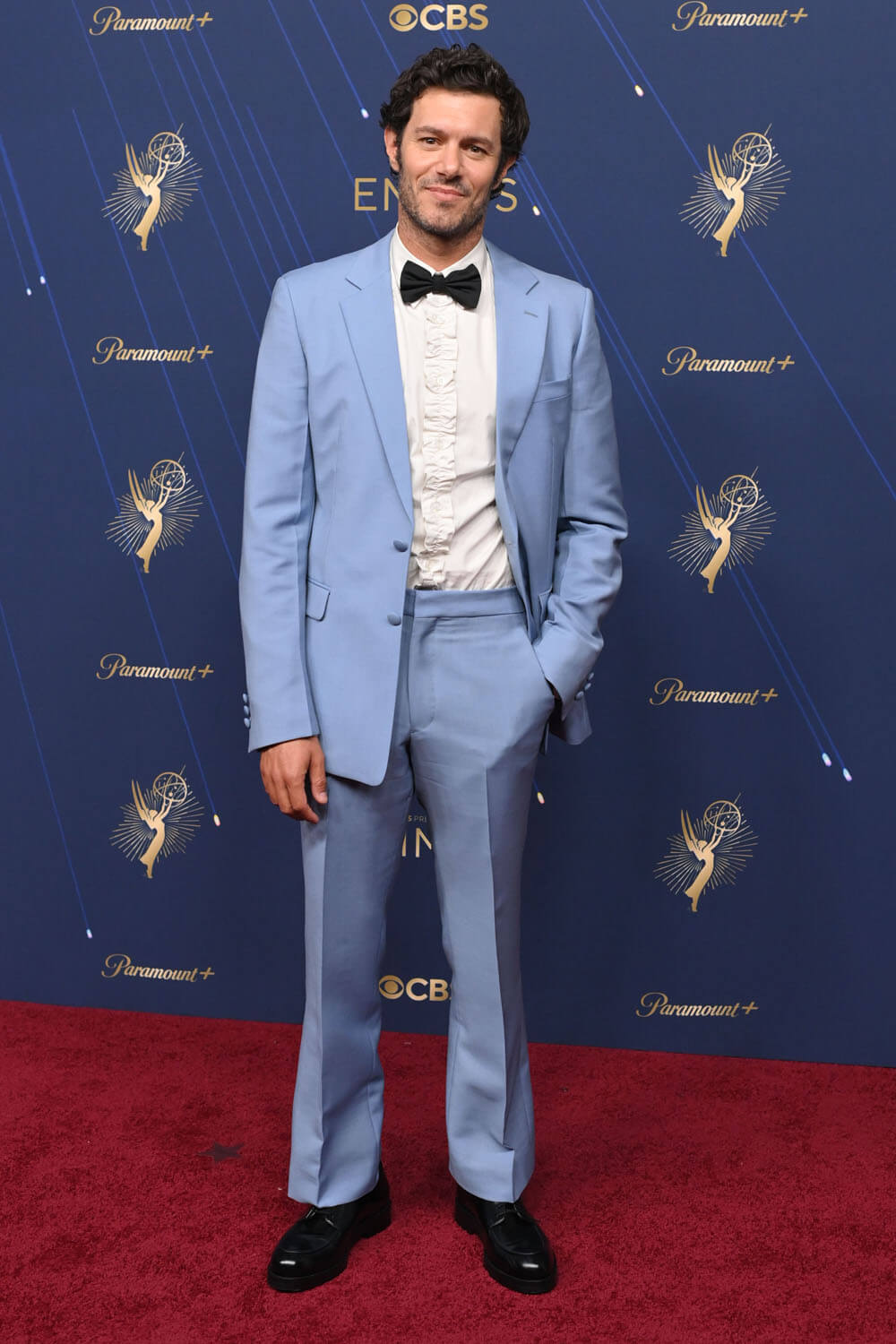 Then there’s Adam Brody, who tried something with a blue tux and ruffled shirt. Honestly, I’m so distracted by Leighton Meester looking like anyone but herself because of that pastor’s wife’s haircut. I hope that’s for a role. Bless her heart.