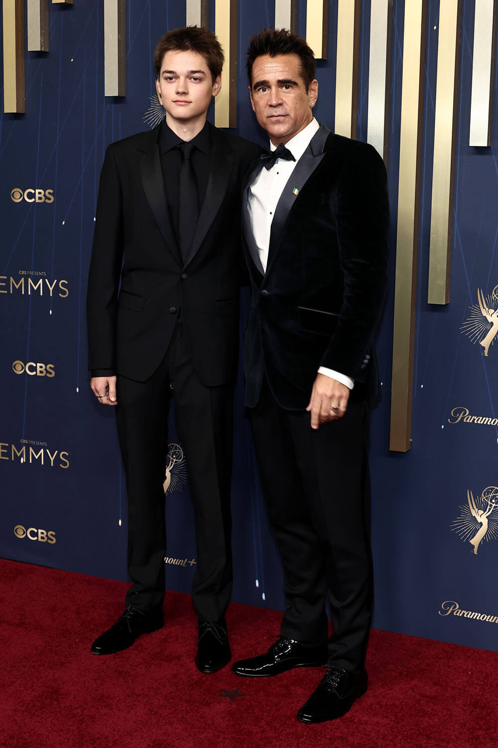 Finally, there is Colin Farrell, who kept a relatively low profile, given that he was a nominee and is also a movie star. He wore a classic black velvet tux and brought his son, Henry, as his plus one. Cute.