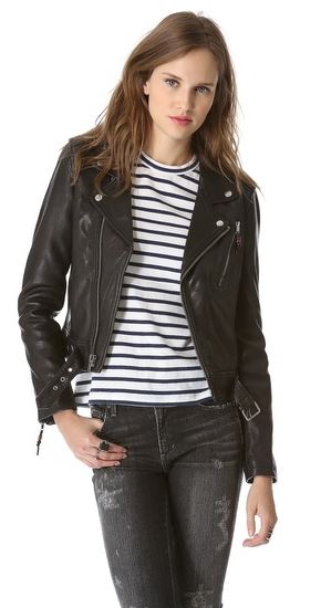 Okay, now it’s time to take it up a notch with an oversized crisp white button-up shirt (17). Then over that you’re going to toss on a great crew neck sweater (18) (choose any color you so desire) and thennnnn! the final piece of the fashion puzzle is finishing it with a great leather jacket, check out some of my picks here (19)...