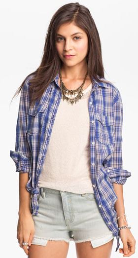 Next she topped off the look with this (5) plaid button up. However, if you’re looking for some budget friendly options then no sweat because any of the following options will do the trick. Click away here (6), here (7), and here (8).