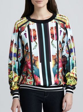 Dear Sasha! I’ve been watching Lainey on The Social and I LOVE her big printed tops so can you find me a sweatshirt with flowers but nothing to cute or pretty. The busier the better! Love D.