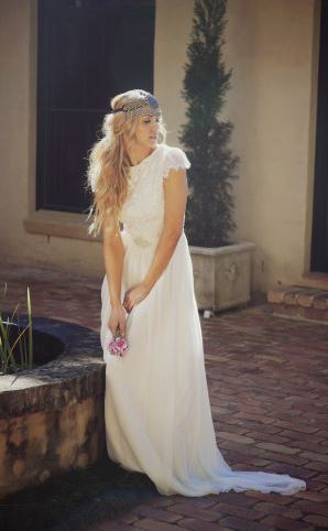 Another down under designer is Grace Loves Lace. It’s a haute hippie’s dream, but the standout from the collection in my opinion is this Ariel gown. And at just under a grand she can also afford to splurge on a beautiful headpiece to top off the look. (You know I love Jennifer Behr for that.)