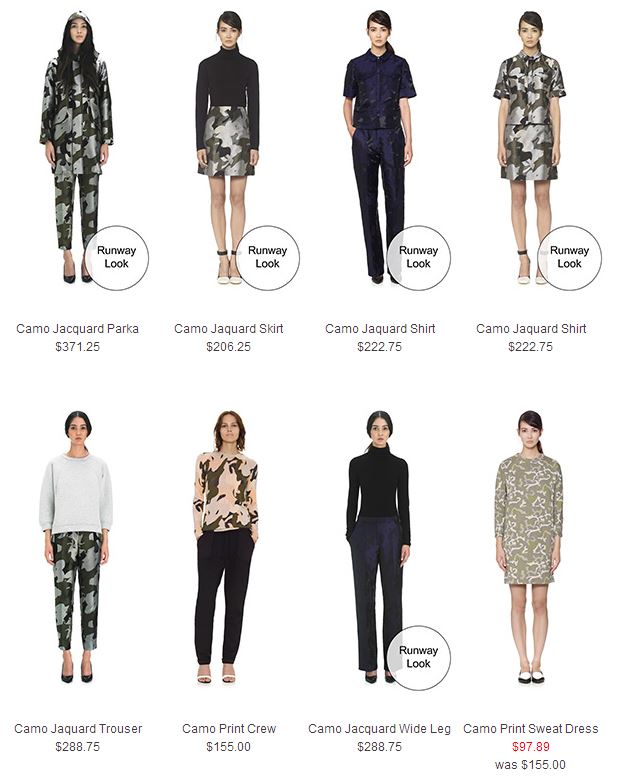 Camo was everywhere on the spring 2014 runways, so if you want to pre-buy a little something-something may I suggest this (2) Carven number. But L, if you need something NOW then I’ve found you some other goodies here (3), and here (4) …
