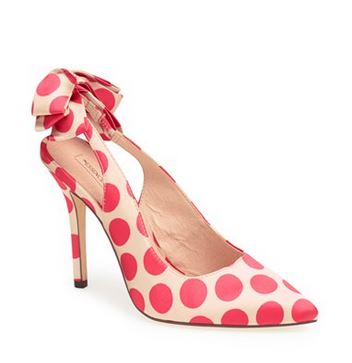 A couple of you wrote in all jacked up on Lea Michele’s polka dot sling-backs so I found them for you here (3).