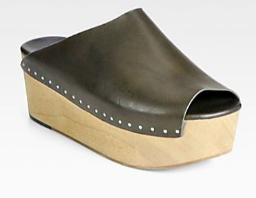 Let’s dial it up even more, shall we? The most fashion forward way is with a hot-ass heel, so get ready because the following links will turn your idea of a clog right on its Scandinavian head. Click away here, and here, here and here.