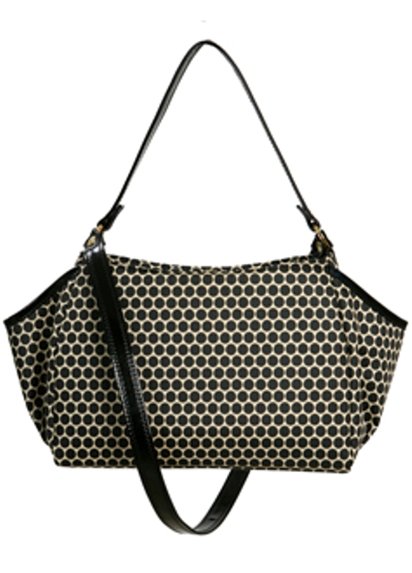 I have never met a polka dot I didn’t like – case in point this bag by Mia Bossi. It’s the perfect balance between infantile cute and mom-with-style cute. Not only does it look great but it’s also made from a waxed canvas, which makes for an easy clean up job if your kid plans to barf in it? I don’t know, does that happen?