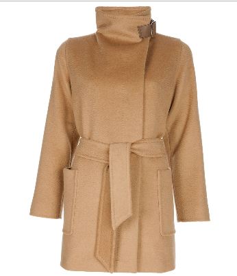 Your best bet is this Neiman Marcus coat. Camel – check. Funnel neck – check. Majorly on sale – check.