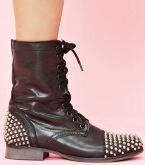 The closest match I could find were these Steve Madden studded combat boots. Sure they’re not knee highs, but you’ll get the same effect with them and at like 1/100th of the cost of Emma’s.