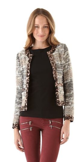 Finally, my favorite has to be this Alice + Olivia blazer. It’s got the three very important C’s: color, collar-less and cropped. Sold!