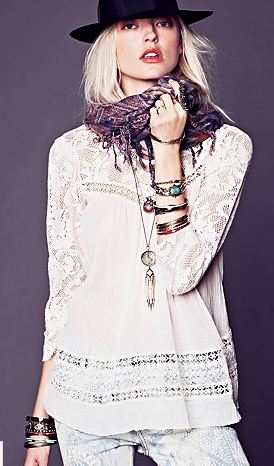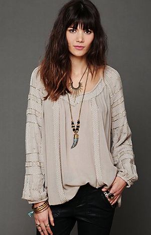 Jen’s top definitely has a peasant style feel and whenever I need a touch of boho in my life Free People is my first stop. Check out some free loving, free flowing blouses here, here, and here.