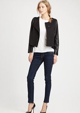 For all of you looking for a secondary leather jacket try going for something with a bit of a different cut and feel. I love a good collar flop or drape on a jacket; it’s not only different but super flattering for your shape. Check out a few of my favorites here, here and here.