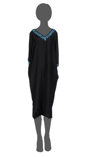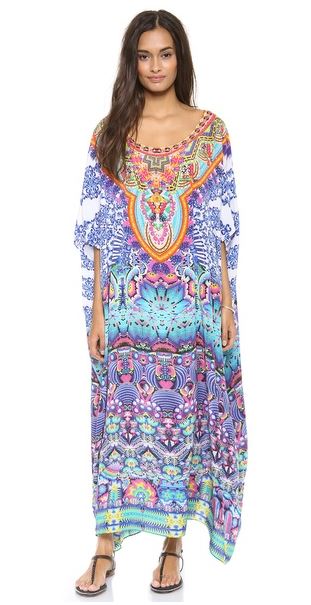 Hi Sasha. I’m four months pregnant and I’m so excited. What I’m not excited about is how large I will be this summer. I’m going away with my husband on a babymoon and I want to have a long caftan for every day? Can you help! D