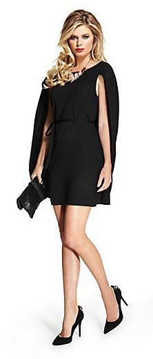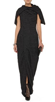 While you haven’t expressed the specific dress code, you can never go wrong with a vamp black gown. So T, I’ve found you some caped wonders here (1), here (2), here (3) ...