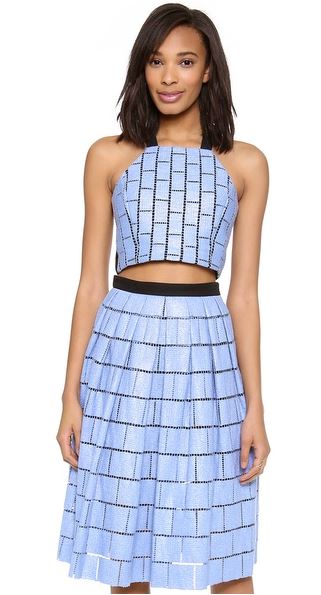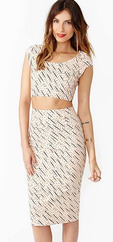 Sasha, I have my engagement dinner coming up in a couple months. I would love to wear one of those two piece pencil skirt with the matching crop top sets that I've seen Kim Kardashian (in all white) wearing! Please help!