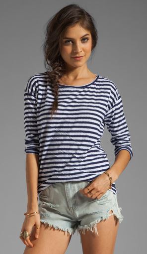 Now while I’m at it I might as well break down the rest of her outfit because it’s just so damn easy. Underneath that amazing coat lives a perfectly effortless stripped tee by Velvet – you can cop it here (6) or here (7). I’d show you other options, but when it comes to style and price point this sucker checks off both criteria.