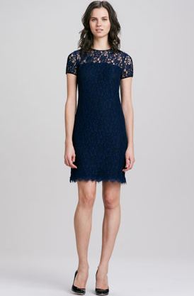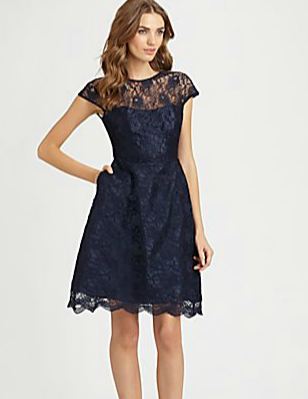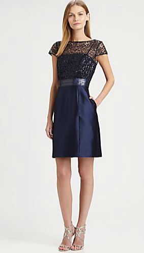 Navy isn’t the poppiest of colors, but a way to make it less boring is by adding interest with a fabric like lace. It’s formal and flirty all at the same time so check out my picks here, and here and here.