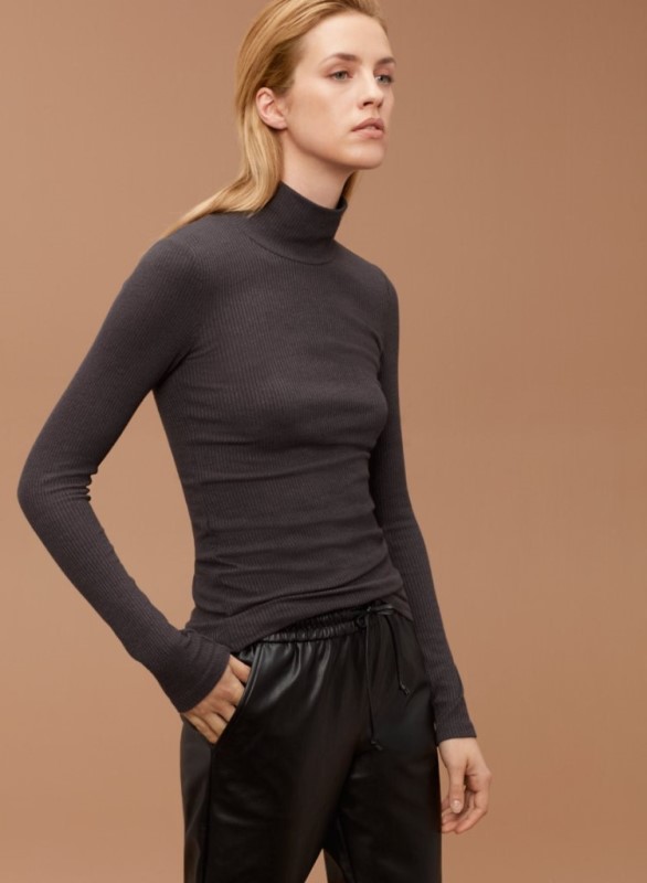 So what do you put on top? Well you can let the pants do the talking and just shove a white tee underneath or you could go ahead and jump on the style wagon and go with the turtleneck. It’s THE essential for the season. Make sure you find one that’s thin and tuckable like this: