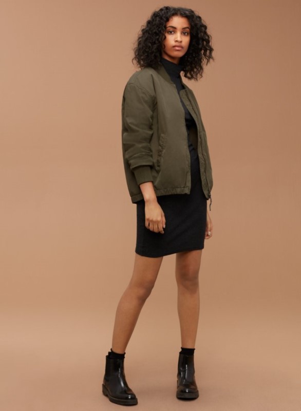 Now we get to some layering. You can dress it down with an over-sized bomber: