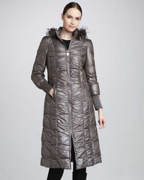 Finally, metallic is the perfect color shield to fight off the elements, and I love the bold silver hue juxtaposed against the pretty ruching details of this Elie Tahari parka.