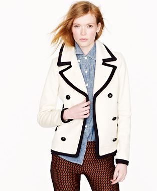 I’m seriously digging this slick-ass looking coat from J Crew. The white against the black trim not only adds some style interest, but it’s right on point with this season’s color contrasting obsession. And oh damn, it’s on sale!