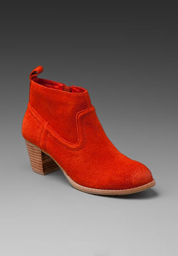 The suede ankle boot trend is going strong thanks to the Dickie by Isabel Marant. There are lots of takes on this look, and here are two great kicks that can get you ridin’ the crimson wave in style. Click here and here.