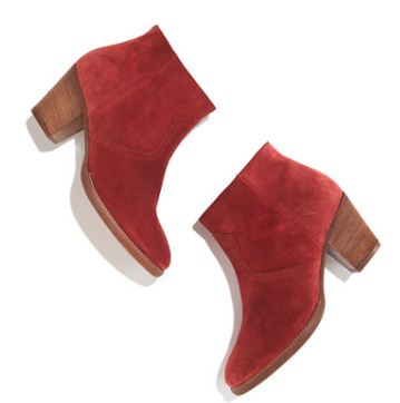 The suede ankle boot trend is going strong thanks to the Dickie by Isabel Marant. There are lots of takes on this look, and here are two great kicks that can get you ridin’ the crimson wave in style. Click here and here.