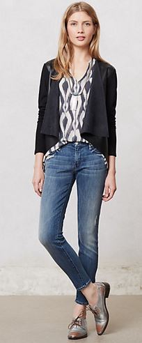 If you’re digging the front leather panels, but want a more relaxed fit then I’d suggest going with a draped cardigan. It’s effortless chic plus a great topper for any outfit. Get clicking here (5), here (6), and here (7).