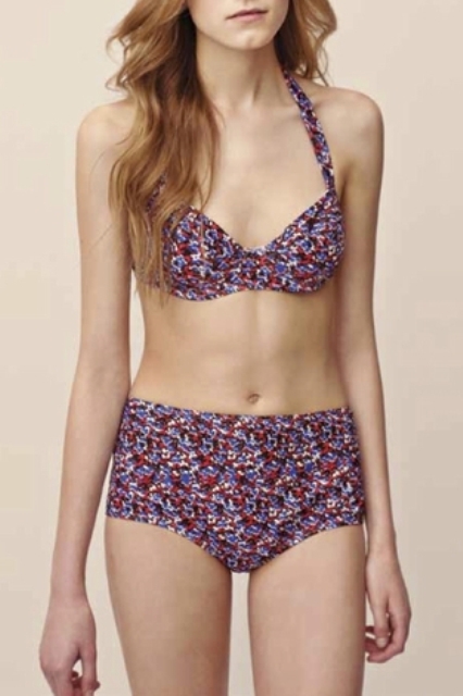 I’ll admit that the model in this retro swimsuit looks like she just crapped her cooch, but I’m chalking this one up to a bad photo because I love the print, colors and cut.