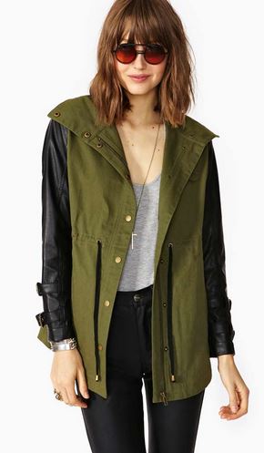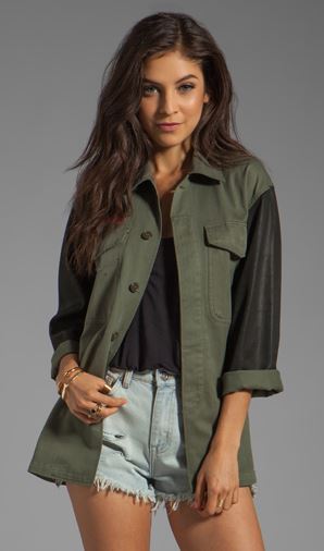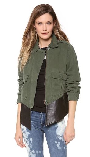 Sasha Finds: Sandy’s green jacket with leather sleeves