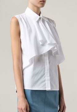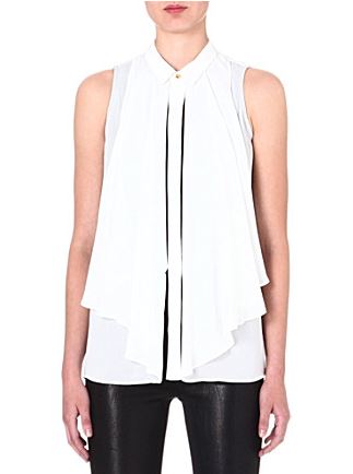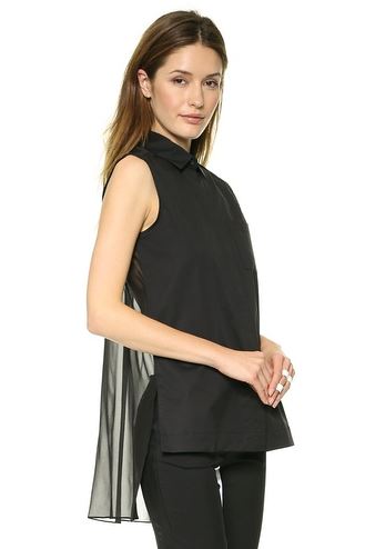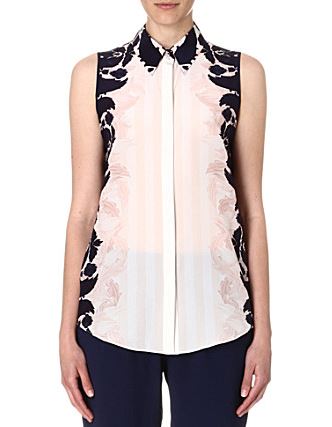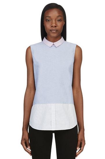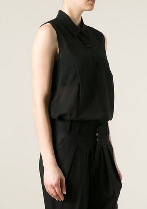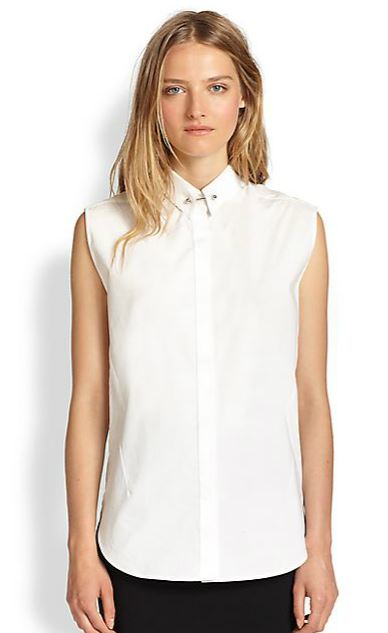 Sasha, recently I've become enamored of collared, sleeveless, tailored shirts, but haven't had much luck finding any. If you could sleuth out any for me that would be great! P