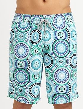 The one brand that kept coming up in my “research” was Vilebrequin – it seems to be the major player on the market. Now, I warn you, you’ll need to cough up some dough, but nothing out there matches their style prowess. Click here, here, here and here for some eye poppin’ suits.