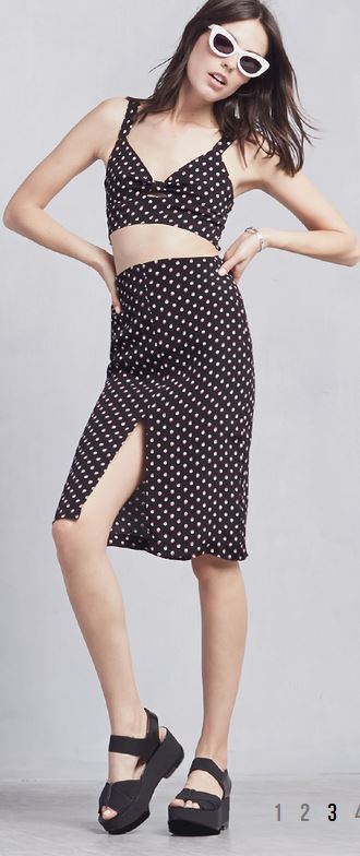 Let’s start off with this matching polka dot set. I have to say this is a fine-ass look on her - I love it. So for all of you wrote in, you too can cop the outfit at Reformation (1).