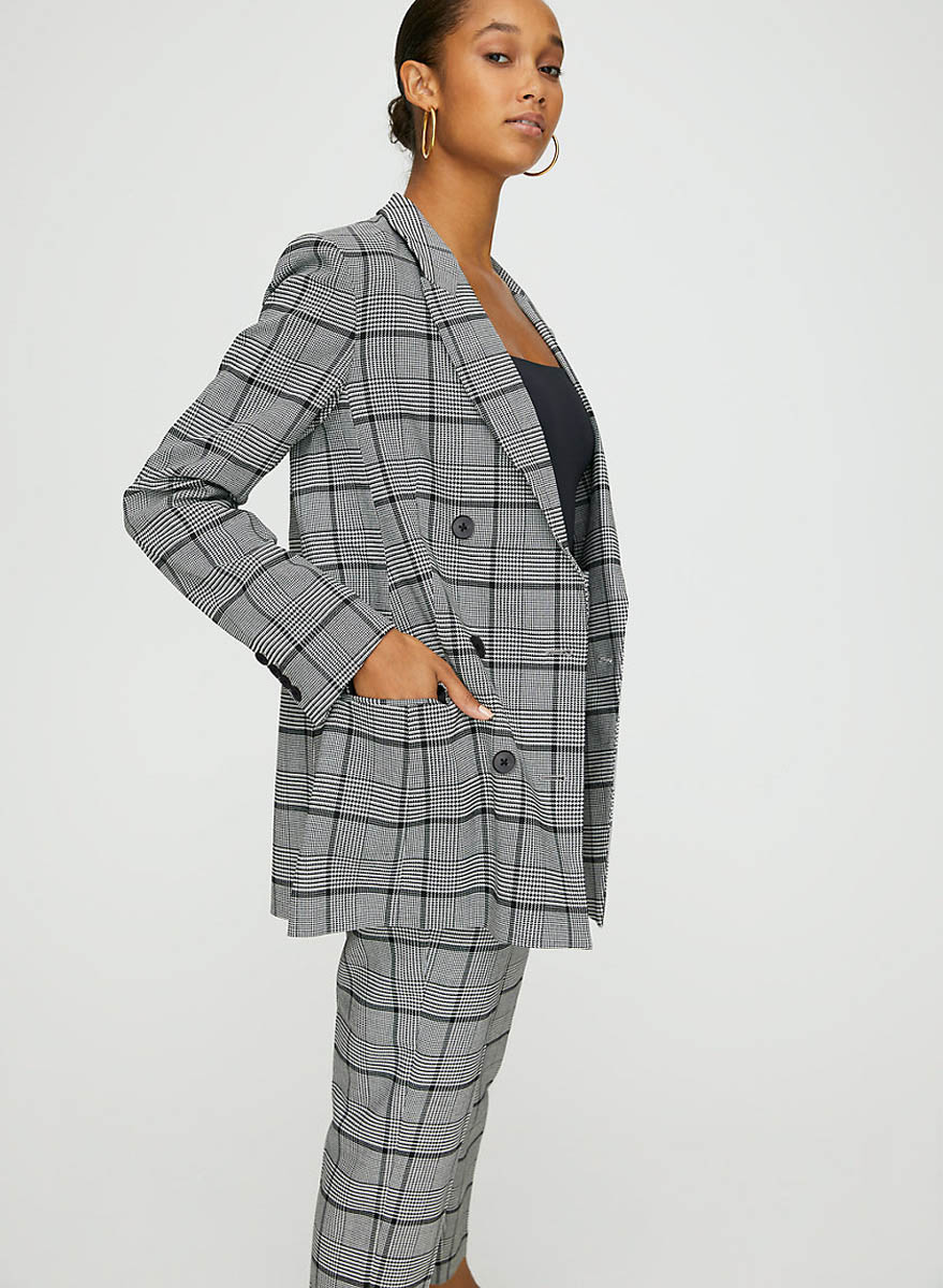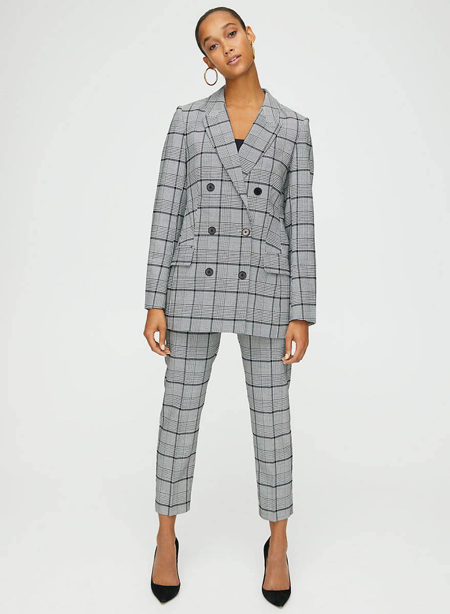 This one just landed in Aritzia and I know that because there’s a store right by my work and it’s basically the Cheers of my life. Yes, I’m 100% Norm. I live there. I just love this piece so much. The check is a timeless print that can easily be incorporated into your everyday looks. Throw it over a dress to get that juxtaposed menswear vibe or let it finish off a simple t-shirt and high-waisted jeans getup. And if you really wanna turn it up then I’d copycat the model above and do the matching printed pants and power suit your ass all through fall.