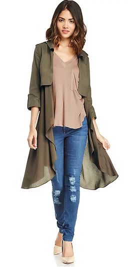 Now, earth tones and trenches go hand in hand and a great alternative to beige is olive green. It not only looks great on all skin tones, but it really refines an outfit. I’ve sleuthed my standouts for your price point here (3) and here (4).