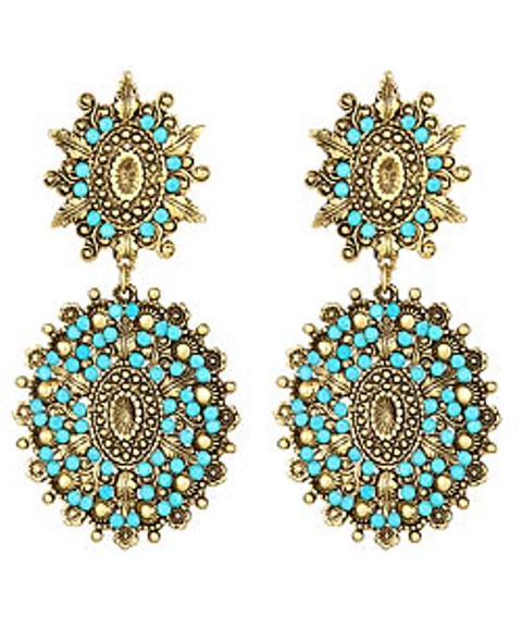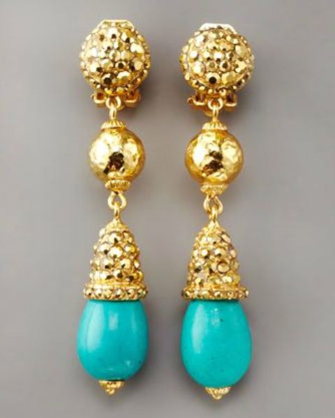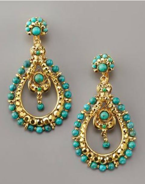 Dear Sasha, I am getting married in Mexico in 2013 (yes, a long time from now but I like to plan ahead), and am trying to find a pair of turquoise drop earrings to wear on my wedding. Gloria (Sofia Vergara) from Modern Family was wearing a great example of what I'd like - I have been trying to find a picture to send you but can't find one online. Please help! I am willing to spend up to $300, but of course would prefer to keep it well under that since I'm on a budget. E