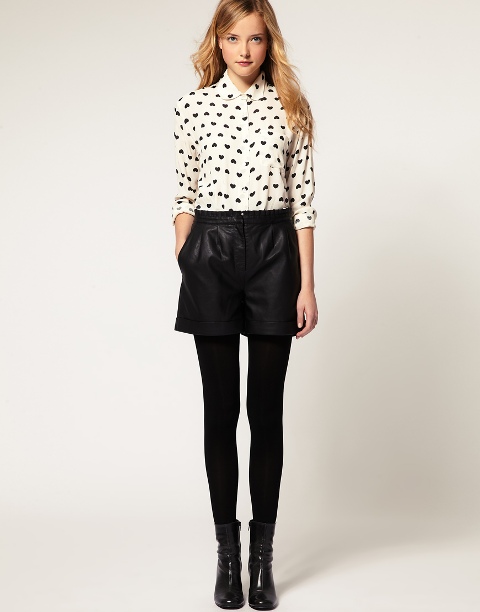 Leather shorts are not going to go out of style anytime soon, so for a great looking staple in your closet click here and here.
